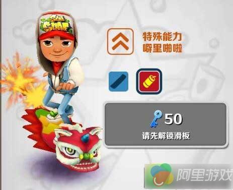 技能:噼里啪啦。在滑板尾部会出现鞭炮效果,相当的华丽