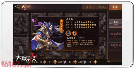 对于最顶级的27位名将而言,得到他们的好战玩家甚至可以使用名将所独有的名将技,例如隋唐演义中第一好汉李元霸,不仅拥有攻击10、防御9、生命9的顶尖成长率,其“天下无双”的名将技,可以在降低敌人生命上限后再对其造成50%生命上限的伤害,就算是《大唐无双》里最强“肉盾”职业——少林,也经不起这样的折腾,简直是赖皮到不要不要的。