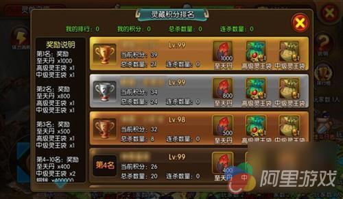 在灵兽之原内通过杀人可以累计积分,最终将根据积分排名发放不同奖励。前三名更可获得大量至天丹,已经中级和高级灵王袋各一个。