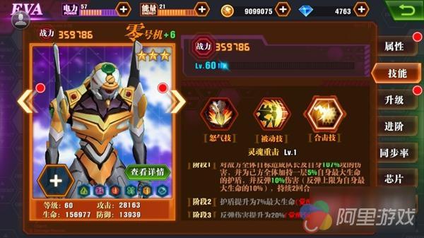 在游戏中,对零号机的定位是:绝对防守、群体反伤。从对零号机的定位就可以看出,他具有强横的生存能力和无懈可击的防守。下面以 60 级进阶到 +6 的零号机为例,并与 +6 初号机和 +5 二号机兽化进行横向对比,来对零号机进行深度解读。