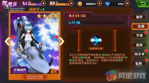 零号机的潜能也与其他 EVA 不同,初号机、二号机兽化都是攻击、伤害加成,而零号机更注重防御,特别是进阶 +4、+5 的潜能,防御 +12% 和防御 +2000,成就了零号机无人能及的高防御。