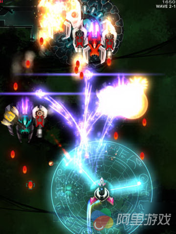 作为一款弹幕射击游戏,在此前的作品当中,不少玩家就被游戏中精美的画面和酷炫的爆炸效果所吸引,而在新作当中,这些优点都得到了极大的加强。在游戏中玩家将控制飞船与大批的敌人进行对战,通过消灭敌人玩家可以收集一些发光的物品,而这些物品将会在飞船周围设立一个保护圈,当面对棘手的问题的时候,玩家可以释放保护圈将一定范围内敌人的攻击全部抵消,而且在游戏中玩家还可以对飞船以及技能进行升级。