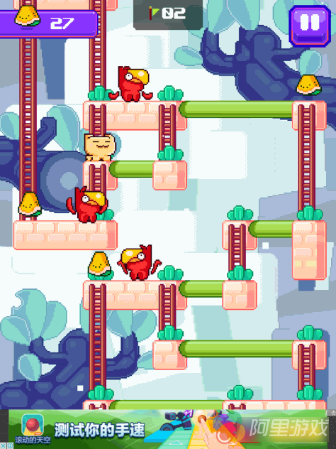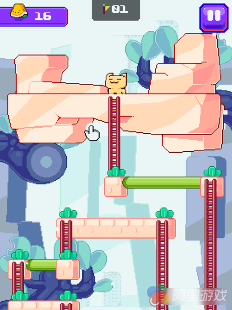 《时髦的猫(Dashy the Cat)》的画面采用2D竖版屏幕来呈现,而画风则是喜闻乐见的卡通像素风格,往好听了说这是复古,往坏了说其实就是想省钱嘛…本作画面整体显得比较简单和清爽,并没有明显的模糊感,而且画面中的角色们都比较可爱,比如主角小猫咪以及反派“愤怒的小鸟”,应该能吸引到一些妹子的关注。
