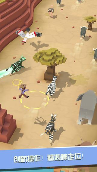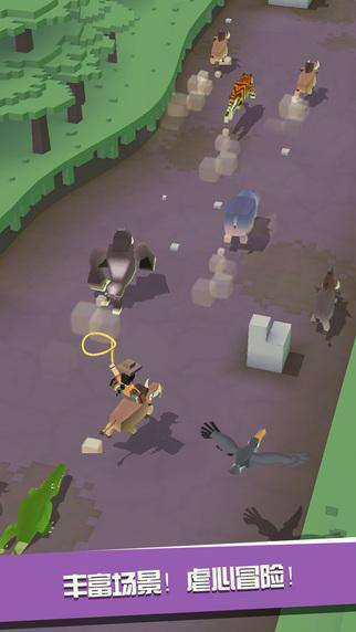 《疯狂动物园》是一款集3D像素、急速跑酷和模拟养成为一体的休闲小游戏。在游戏中你将扮演一名富有冒险精神的绝世牛仔。在高速移动的情况下与各种动物一较高下。你要尽可能多的套住动物,将它们统统带回飞船上的“空中动物园”中饲养;并进行园区升级,以便迎来世界各地的游客光临赚取更多金币。