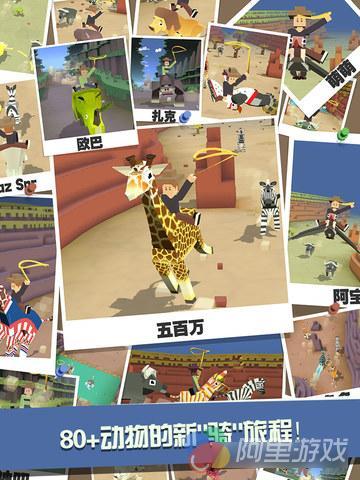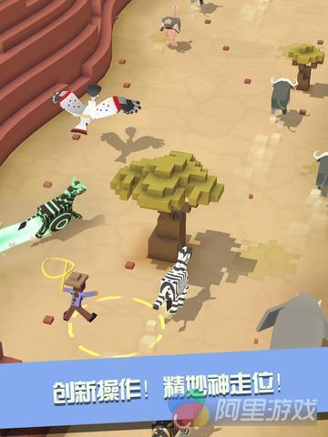 《疯狂动物园》是一款融合了跑酷与模拟经营的像素休闲小游戏,在游戏中你将扮演一名豪迈潇洒却又极具冒险精神的西部牛仔,骑乘着你信赖的马儿挥舞手臂甩出套索与踏蹄奔跑的动物一较高下,每当你的套索成功拴住一只动物,你都可以尝试驯服它们,除了骏马、耗牛、大象、斑马……这些看似可以骑乘的动物以外,游戏中诸如猩猩、鸵鸟、长颈鹿、烈火鸟、犀牛等“只有你想不到的,没有你骑不到的”充满美式幽默感的奇葩坐骑亦能让玩家会心一笑。