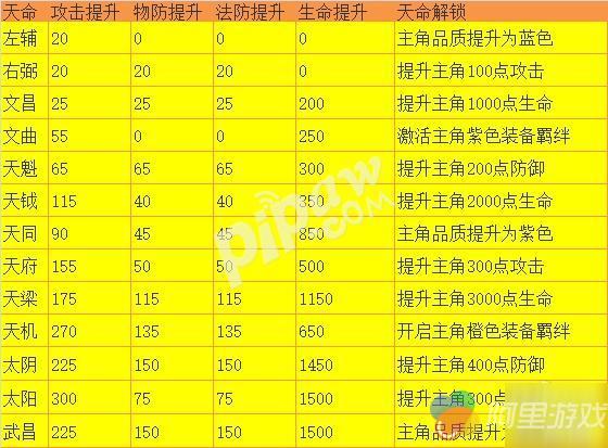 当大家成功获得每个天命的所有碎片后,可以通过激活来提升主角属性(且记如果只是点亮是不能激活整体属性的)。激活后主角的综合属性会有大幅度的提升,且解锁一定的天命后主角的品质也会有所提升。比如:从蓝色变成紫色品质或是从紫色变橙色。
