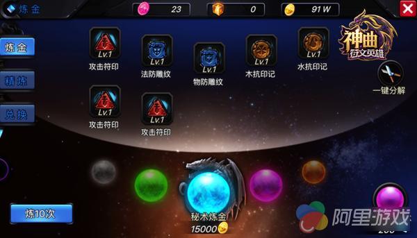 符文炼金魔法的大力发展,形成了特鲁尼斯现有的符文能量体系。在《神曲之符文英雄》中,玩家点开“符文”界面,通过彩虹炼金水晶球来获取各种符文。符文的等级与彩虹色对应,并且每次炼金有一定几率开启下一级水晶球,而水晶球级别越高,获得稀有符文的几率就越大。