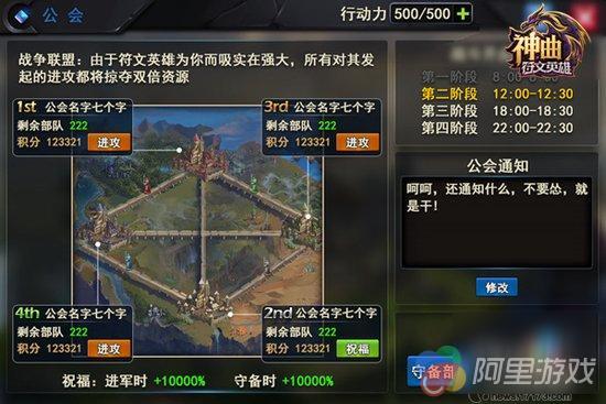跨服公会战成员进行战略操作时,会扣除行动力,所以玩家需要计算行动力与战略的换算比。而与其它三个公会之间的布防进攻经验,就要靠玩家们多参与来自行体会。《神曲之符文英雄》跨服公会战旨在为玩家提供一个群体性的PVP玩法,让全民参与其中,一起体验SRPG策略的乐趣!