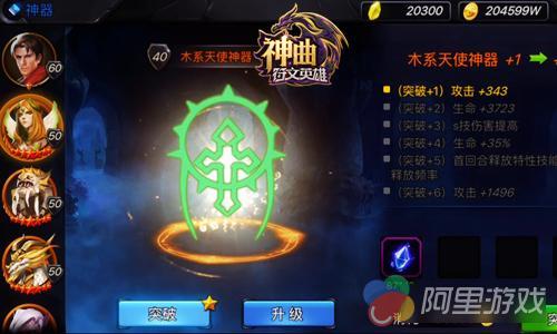 其次,我们来说介绍一下“神器”拥有的两个加成体系(成长型):第一个叫“神器大师”,是通过神器升级达到指定级数后激活的效果,主要是对生命、攻防等属性加成;第二个叫“突破”,通过神器突破而带来特殊的成长增益,比如强化S技能的效果,并且终极突破会启动专属光环。