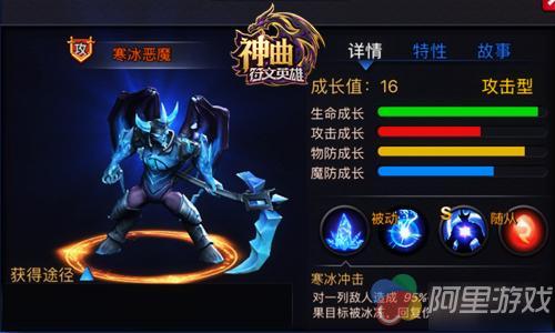 而《神曲之符文英雄》的水系恶魔拥有最高的生命成长,并且被动技能受到伤害降低25%,完全可以代替防御型魔灵,成为一个主坦。再加上水恶魔的技能兼具驱散和控场,对冰冻敌人造成伤害还能恢复自身血量,不论是PVP还是PVE的战斗,都一定会拥有水恶魔的一席之地。