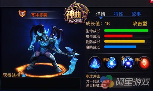 而《神曲之符文英雄》的水系恶魔拥有最高的生命成长,并且被动技能受到伤害降低25%,完全可以代替防御型魔灵,成为一个主坦。再加上水恶魔的技能兼具驱散和控场,对冰冻敌人造成伤害还能恢复自身血量,不论是PVP还是PVE的战斗,都一定会拥有水恶魔的一席之地。