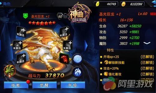 圣光巨龙七星觉醒,分别会获得“开场SP+25”、“解锁新技能”、“攻击+20%”、“强化普通”、“物防+20%”等特殊能力强化。再搭配光明龙神图腾的突破+7,圣光巨龙将成为所有想侵略特鲁尼斯大陆一道难以逾越的天堑!