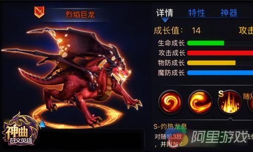 烈焰巨龙身为高贵的龙族一员,属于橙色品质魔灵,可以进行七星觉醒。龙神图腾同样可以突破到+7,+5时获得首回合释放特性技能并提高释放频率特效;+7时会获得魔法伤害提高15%的强大光环。《神曲之符文英雄》烈焰巨龙,为你而战!