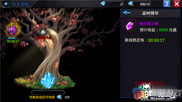 符文圣树是我们获得光晶一个非常重要的地方,将魂之果升级到最高级之后每小时都能获得8000光晶,并且还能栽种多颗,所以我们在前期就需要好好的经营这可符文圣树,可以让我们获得比别人多的多的光晶。