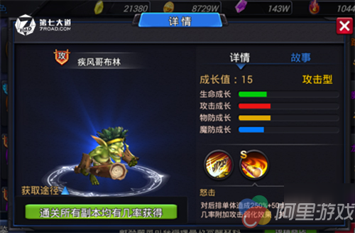 分析: 木系哥布林——疾风哥布林,怎么样,我们的策划哥哥很有才吧?疾风,嗯,听来有春天的味道。然而这个帅气的名字并没有附带一个帅气欧巴的形象,当你看到这只眼神邪恶,通体绿色,面容丑陋,矮小迷你的小怪物时,你是不是失望了?先别着急转身离开,嗯,他的伤害可以很高的。哥布林的通用技能——重击,能对地方前排造成高物理伤害,离得越近伤的越深啊。疾风哥布林的S级技能——怒击,区别于通用技能重击,这个技能是对地方后排单体造成超级无敌巨高的物理伤害,并附加攻击弱化效果,持续2个回合。