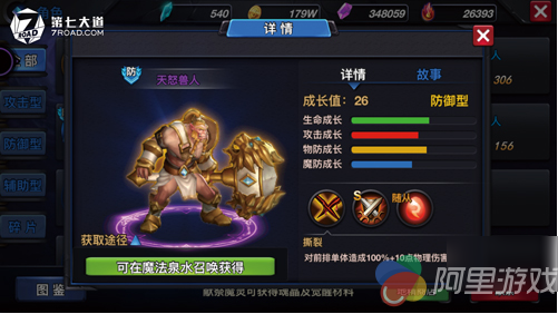 分析:天怒兽人,通体土豪金,手握金色巨型豪华版镶蓝宝石武器,锐不可当的气势有木有?它的S级技能——光明塔盾,这个技能很有意思,当别人对它发起伤害,它成功格挡之后,还可以触发它的反击性能,对敌人造成伤害,攻击它的敌人就属于偷鸡不成蚀把米的那种情况,这个顽固的技能能保持天怒兽人的生命值,所以,又是一个易守难攻的角色,做肉盾的合适人选。