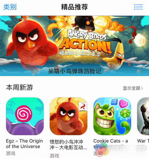 本周有136款新游上线,15款被推荐至“本周新游”。本周人气最高的新游莫过于《愤怒的小鸟冲冲冲》,Rovio将该游戏与愤怒的小鸟大电影进行互动,对小鸟重新进行了3D角色造型塑造。不过当下流行蠢萌风,笔者认为新造型过于灵活、精明。《愤怒的小鸟冲冲冲》在玩法上也不再只是力学原理支撑,还加入了救小鸟、抢鸟蛋、收集糖果等模式。该游戏目前也登上首页精品Banner推荐。其余14款游戏除了《War toroise(龟战)》是塔防射击游戏外,其余均为休闲益智游戏,以三消、冒险为主,虽然加入了新鲜的故事,但远谈不上创新。由于玩法创新不易,App Store选择游戏时,画风的权重就上去了。