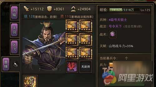 千秋霸业传百世,唯有英雄堪比军。曹操东汉末年一代枭雄。在《攻城掠地》手游全新版本中将以全新紫卡身份登场。玩家需要打过决战瀛洲获得传国玉玺后,击败副本中的曹操才能在酒馆进行招募。当然曹操作为紫卡属性也是非常给力的。4级号天锐士,拥有号令天下(共计范围5排)。天赋技能:山地战斗力+35%。是不是非常想要呢来《攻城掠地》手游新版中获取吧。