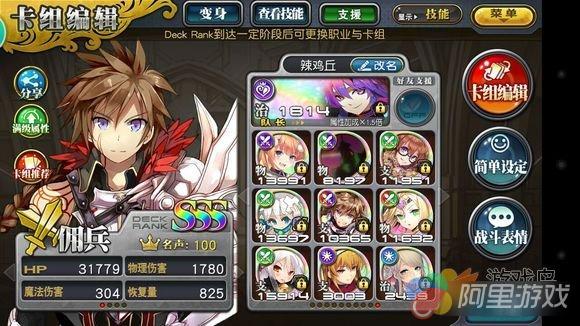 佣兵:套路都写明白啦,剩下的自己琢磨吧。4C摸不到3T(或者你没有3Tbuff)可以用阿莱雅控一下右翼,3Chain就能裸控,缓解很大的压力。如果起手摸到一堆3C刀必须洗牌的话那么就用刀去打右翼。物攻面板尽可能低一些(2000以下),不过似乎没有索尔压不下去,那就算了。