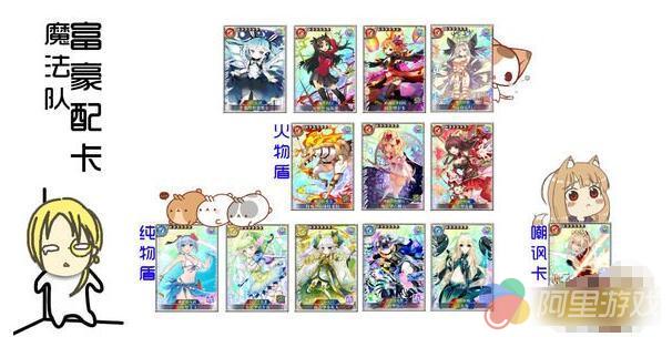 富豪:全物理盾都带上,最好带2张+2抽卡。至于嘲讽请酌情,可以嘲讽吸收双破后的连续物理单点,但非必须,带1张应急用是可以的。(前面被单点破防太多很吃亏)魔法盾不需要,全程就一个魔法单点,5c破剑后就没魔法a0e了,4c最好能叠出火。