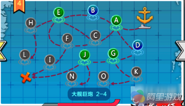 BOSS点:2战巡1重巡2轻巡/1战列1重巡2轻巡2驱逐总的来说第二章最难的还是2-4,BOSS有血条,S胜的话一共要打5次,除了BOSS有血条外,还有E、I、J点门神等着你,sawanari是3战巡或战列2重巡1航母打过去的,而且每个舰的等级最好有10级以上,推荐在2-4A点练级,基本每艘船都能有240经验值外,提督也能拿到60经验值,也是提督冲20级加入公会的一个好方法。