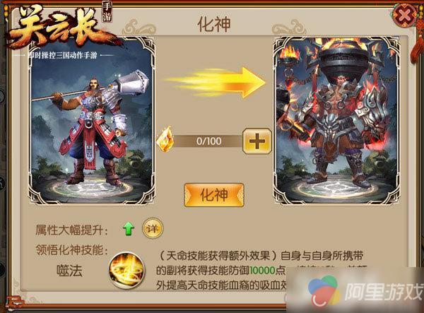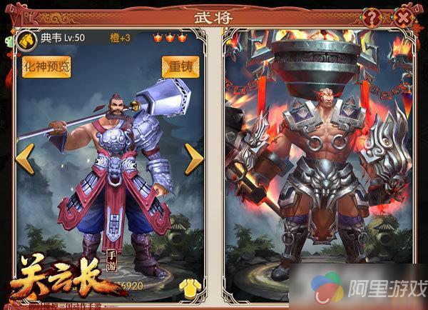 可见化神后的典韦比化神前形象更加威武霸气,不失三国悍将风范!让人感觉战斗力瞬间暴增,能够以一敌百。