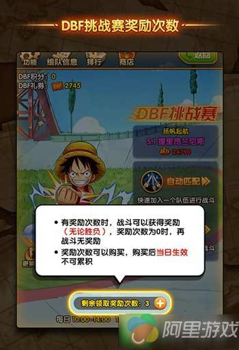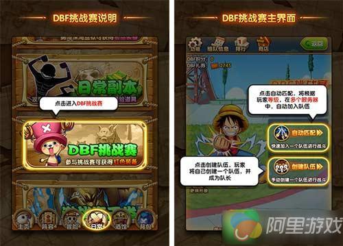 在《航海王强者之路》中,只要各位玩家达到70级就能开启DBF挑战赛。点击游戏主界面的“日常”按钮,即可进入到挑战赛系统。在DBF挑战赛中,玩家既可进行随机匹配组队进行挑战,也可以召集好友创建自己的队伍,与其他队伍玩家进行PK。需要注意的是,在创建队伍后,所有队员准备就绪时,队长需要再规定时间内点击开战,否则会被请离队伍。