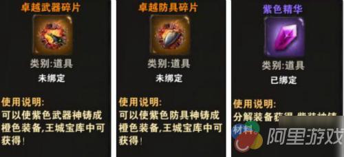 橙色防具:紫色防具+卓越防具碎片+紫色精华