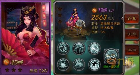3、貂蝉:作为中后排武将克星的后排武将,貂蝉同样克制自身。