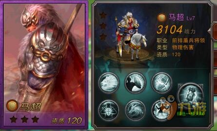 武将分析:作为一个前排武将,格档属性的武将天赋令马超的抗击打能力非常出色。铁骑冲阵对于正前方敌方武将造成的三秒眩晕在战斗中是非常有效的打断和控制技能。强壮的身板和适时的控制既保障了自身的存活也保护了己方后排将领免于被敌方的一些技能针对。