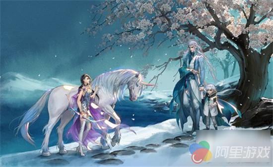 冰族皇子卡索和守界使者梨落在凡间初次相见的情景非常唯美,最新曝光的《幻城》手游插画则高度还原了该场景。樱花树下,流落人间的冰族皇子卡索,牵着弟弟樱空释的手,神情有隐约的忧伤,樱空释还是小孩子模样。梨落站在高高的独角兽旁边,来迎接王回家。樱花漫天飞舞,两人相顾无言,时间仿佛静止。