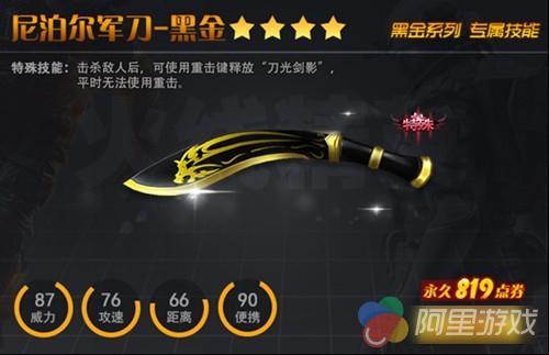四星近战武器尼泊尔军刀-黑金震撼上架啦!而且,10月13日至下次版本更新,永久尼泊尔—黑金只需要819点券!!作为黑金系列的近战武器,尼泊尔军刀-黑金拥有专属技能,成功击杀对手后可使用重击键释放“刀光剑影”。