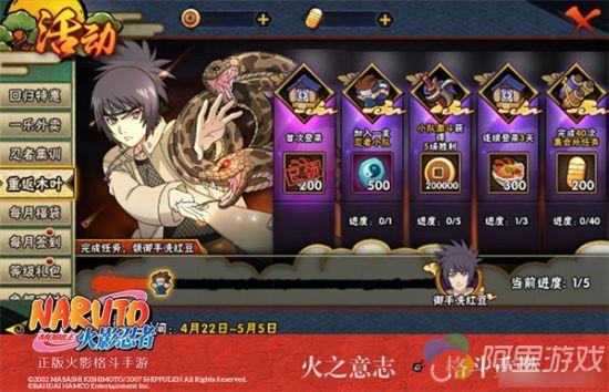 在新版本上线后,符合流失条件的忍者学员只要在“重返木叶”活动期间,每日登录游戏完成指定任务可以获得丰富奖励,完成所有5个任务,可以直接免费获得B级忍者御手洗红豆。