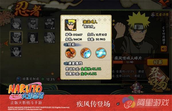 在火影忍者疾风传动漫原著中,鸣人跟随自来也出村修行归来,完全褪去了童年吊车尾的模样,变得阳光积极,更加坚定的贯彻自己的忍道:勇往直前,说到做到!跟随鸣人一路成长起来的学员们,在回归木叶之后也将第一时间入手这个十五年火影绝对的主角,与他共同历炼修行,蜕变为自己人生的救世主,如疾风般勇往直前!