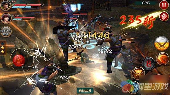 作为一款动作游戏,《极无双》在操作设定上沿用了传统的摇杆和技能键结合的模式。对于动作手游战斗目标难以锁定的技术层面难关,《极无双》采用了大范围攻击技能来弥补玩家无法锁定目标的设定,这让小编想起了《真三国无双》的割草玩法。而游戏也确实是一款割草类游戏。当数量众多的敌军向你涌来之时,我们挥刀向前砍去,这就让玩家在砍怪杀敌时能够获得更多的快感。