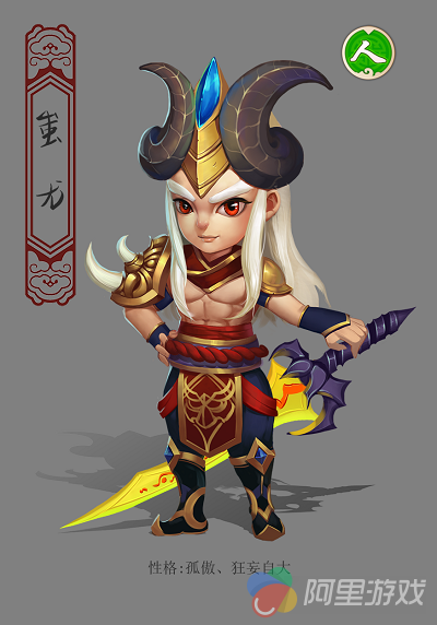 九黎族部落酋长,出生时受深埋于庭下的盘古斧神气的影响而拥有天生神力。战场上的他所向披靡,杀敌无数,被誉为魔神蚩尤。
