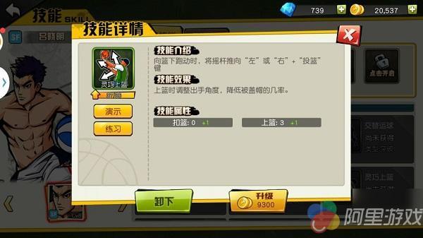 2、灵巧扣篮,灵巧上篮 针对防守技能的变种得分方式,可以有效的防止被盖帽等情况