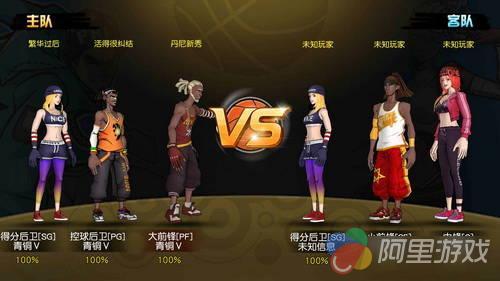 几乎是马上就匹配到了队友和对手,在加载界面中,我们能看到各个球员所在的位置和队友的段位情况,不过段位需要再更高的等级去天梯中晋升,所以小编这一队目前还都是青铜五,不过还是先来体验一番指上篮球的魅力吧。