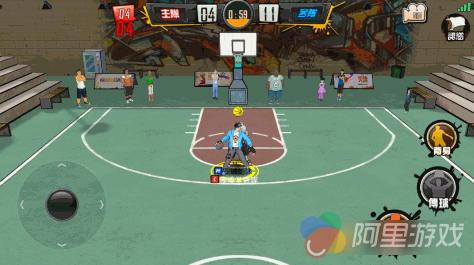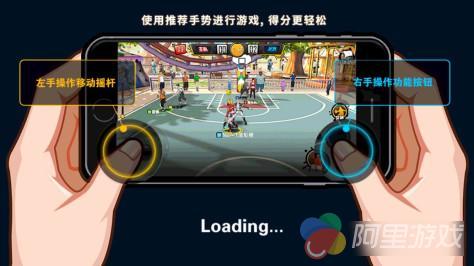 《街篮》采用“虚拟摇杆+功能按键”相结合的操作方式,建议参加参照上图手势进行游戏。