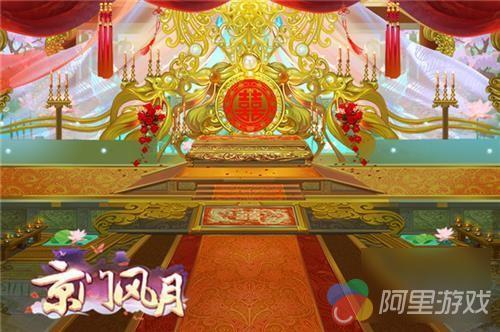 真正的仪式场所也有好几处,风格相似中又透露一些不同,相同的是,三个会场都显露出隆重与喜庆。红色装点的空间,见证幸福的舞台以及婚宴区已经初露真容,就差主角与观众啦!电视剧里总是会有各式各样的婚礼场景,平民、官家以及皇家的婚礼各有特色,你最期待京门风月手游给你准备什么样的婚礼?