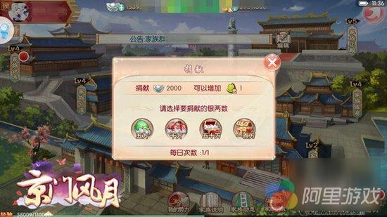 家族捐献是最简单的贡献模式,轻松直接,如果你是个挥金如土的壕,那请承包家族的资金重任吧,还能获得相应不菲的贡献值,何乐不为。若是财力有限,那么除了简单的家族捐献,还有花式贡献获得法。每天登陆京门后问问自己,去找权贵试炼实力了吗?去拉拢权贵了吗?给家族小伙伴送花了吗?去施展朝堂权谋了吗?没有?还不快去!小皮鞭挥起来,这么好的贡献值获得门路,这么轻易放弃可不好啊。除此之外,限时活动皇位之争也可以获得贡献值,总之,家族活动请多多参与,这些都会变成你换取珍稀物品、战斗属性的必备。