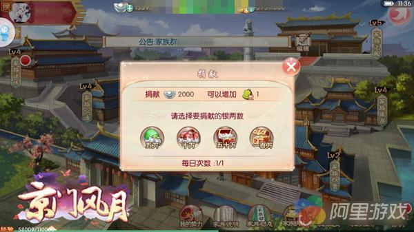 家族捐献是最简单的贡献模式,轻松直接,如果你是个挥金如土的壕,那请承包家族的资金重任吧,还能获得相应不菲的贡献值,何乐不为。若是财力有限,那么除了简单的家族捐献,还有花式贡献获得法。每天登陆京门后问问自己,去找权贵试炼实力了吗?去拉拢权贵了吗?给家族小伙伴送花了吗?去施展朝堂权谋了吗?没有?还不快去!小皮鞭挥起来,这么好的贡献值获得门路,这么轻易放弃可不好啊。除此之外,限时活动皇位之争也可以获得贡献值,总之,家族活动请多多参与,这些都会变成你换取珍稀物品、战斗属性的必备。