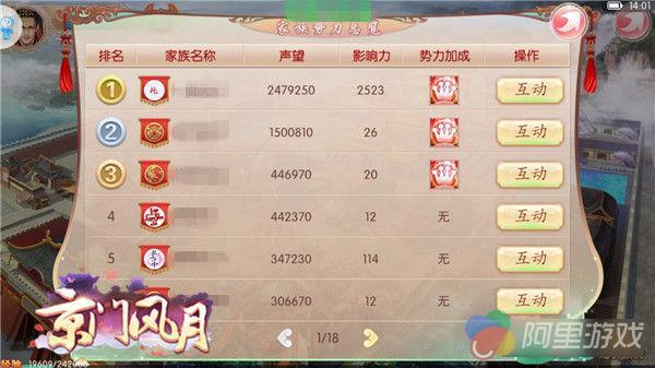 家族势力声望终于显出效果,新版本中的家族势力声望开始有了属性加成,实力一般的会有全体气血的加成,更强一些的家族甚至能获得基础攻击、基础防御的加成效果,所谓越强的势力就能获得越强的加成回报。势力争斗升级后,主子们不要忘记NPC势力的维护,未来还长,权谋京门的乐趣远远不止于此,若是对争权斗势无感,不如找个兴趣相投之人相守今生,闲时举办宴席广邀好友同样能感受京门的美好。