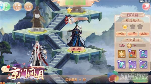 登高望远,顺便摘点儿星星,每过一关收获的星星都将累积起来,在兑换商店换取增益Buff,攻击防御血量都有,可重复购买,效果累加。谁说高处不胜寒,在天阶山上,登的越高越有成就感,排行榜将按照到达层数记录名次,每周结算一次成绩,并且发放奖励。天阶山探索自我境界之旅正式开始,来《京门风月》发现更强的自己。