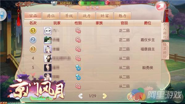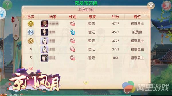 在《京门风月》的排行榜中,同样是一个品级的官位,有的玩家会有爵位称号,如毅勇侯、乐平乡主之类,很有古风宫廷的感觉,想要拥有这些称号,就一定要参加朝堂系统中的爵位之争。爵位之争在每周二、周五20:00-20:30开启,玩家可以根据自身实力参与相应的爵位争夺。
