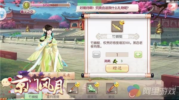 礼物可以从黑市商人处使用通宝购买,每个NPC有不同的喜好,送对礼物事半功倍。从黑市老板处买礼物的时候,可以给老板也送一些哦,好感度越高,商店的物品也会增多呢。鲜花同样也可以作为礼物赠送给权贵,同样需要有倾向的赠送才能获得更好的效果。除此之外,玩家下厨为NPC做菜更显得诚意十足,NPC的口味不同,送错菜的话,对于NPC而言就是黑暗料理啦。