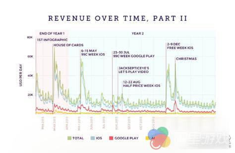 有意思的是,《纪念碑谷》单日营收最高的一天——2015 年 3 月 1 号,收获了 69,484 美元,正好是《纸牌屋》中下木总统玩《纪念碑谷》那一集播出两天之后,足以见证这部美剧响当当的号召力!