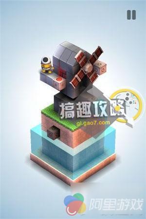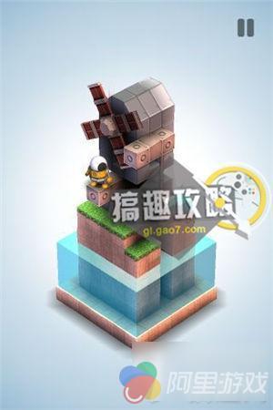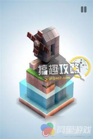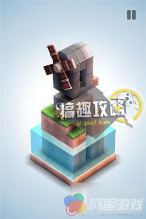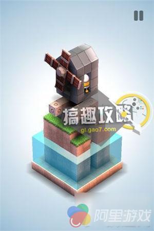 再将草坪上的机关,升到最高把风车抵住。翻转视角就可以直接点击终点到达了。