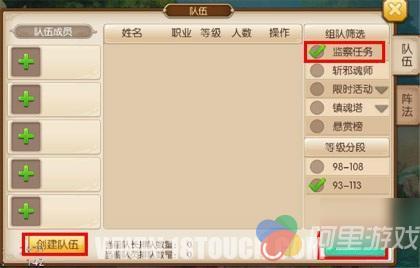2.选择监察任务或者便捷组队进行组队