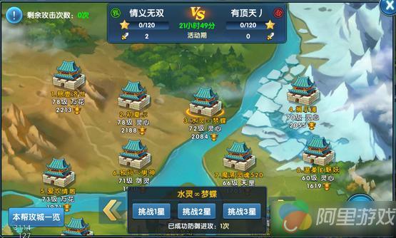 c.玩家可自行选择攻击哪个城堡和星级难度。